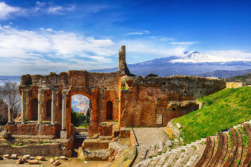 Der heutige Tag steht ganz im Zeichen von Ätna und Orangen. Der Ausflug beginnt mit der Auffahrt auf den Ätna. Je nach Höhenlage werden Orangen, Zitronen, Ölbäume und Weinstöcke angebaut. Vom Rifugio Sapienza aus genießen Sie einen eindrucksvollen Blick über Teile der Ostküste Siziliens. Um die Mittagszeit besuchen Sie eine Orangenplantage. Bei einem Mittagsimbiss dürfen Sie dann verschiedene Zitrusprodukte sowie andere typisch italienische Antipasti probieren. Dazu gibt es lokalen sizilianischen Wein. Am Nachmittag fahren wir weiter nach Taormina mit Blick über die Isola Bella - Traumstrand und beliebtes Fotomotiv. Hier unternehmen wir einen Bummel durch die tolle Altstadt.