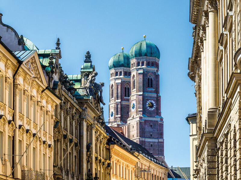 Erkunden Sie Münchens Wahrzeichen, wie das Rathaus, den Marienplatz und die Frauenkirche. Auch das berühmten Hofbräuhaus ist einen Abstecher wert. Bekannte Highlights der Innenstadt sind die Maximilianstraße, die Residenz und die Feldherrnhalle am Odeonsplatz. Auf dem Viktualienmarkt können Sie sich an den Marktständen oder im Biergarten mit bayerischen und internationalen Spezialitäten stärken.