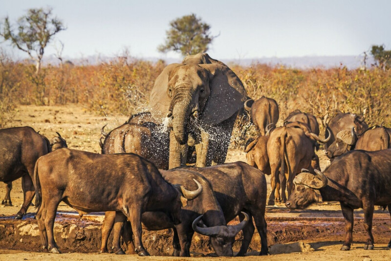 Sehr früh am Morgen haben Sie die Gelegenheit an einer 2-stündigen Safari in offenen Geländewagen teilzunehmen. Nach einem gemeinsamen Frühstück im Camp geht es dann auf die Tages-Safari. Mit etwas Glück läuft Ihnen einer der sogenannten Big Five - Elefant, Nashorn, Büffel, Löwe und Leopard - vor Ihre Linse. bei einem Stopp in einer Lodge, werden Sie vor allem Flusspferde sehr gut beobachten können. Erleben Sie die Savanne mit ihrer abwechslungsreichen Tierwelt. Ein Abendessen mit Folklore unter freiem Himmel rundet das Tageserlebnis ab.
