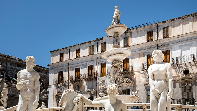 Stadtrundfahrt in Palermo. Sehen Sie u.a. den Dom mit dem Sarkophag Friedrichs II. von Hohenstaufen, den Normannenpalast und die Capella Palatina. Nachmittags Ausflug nach Monreale – Besuch der weltberühmten, mit Mosaiken geschmückten Kathedrale und des herrlichen, säulenverzierten Kreuzgangs.