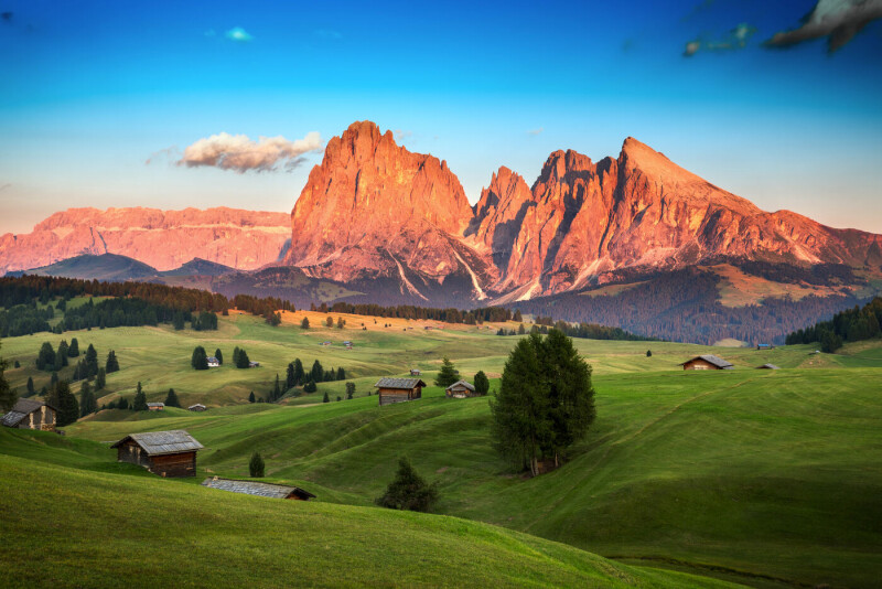 Atemberaubende Ausblicke warten auf Sie. Der Weg schlängelt sich durch enge Täler und über Pässe, gibt Einblicke auf mächtige Dreitausender und Bergdörfer frei. Zwischendurch wird immer wieder Pause gemacht, um die Ausblicke zu genießen. Durchs berühmte Grödnertal geht es dann zurück zum Hotel.