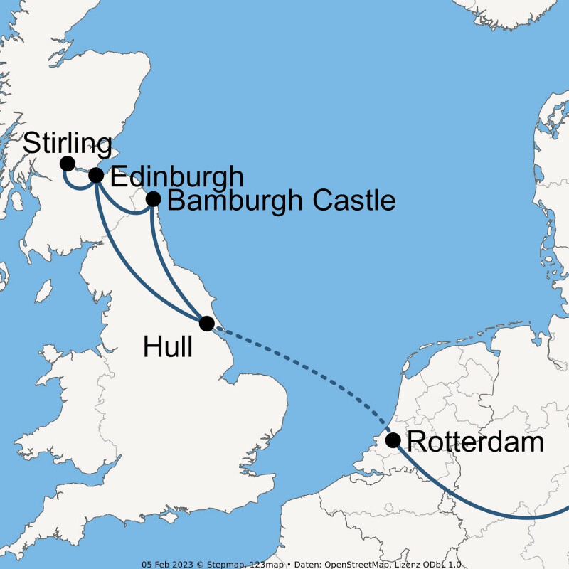 In Hull verlassen Sie nach dem Frühstück das Schiff. Von dort geht es auf direktem Weg nach Edinburgh. Gleich nach Ankunft entdecken Sie eine der schönsten Städte Europas während einer Stadtrundfahrt. Weithin sichtbar thront das Edinburgh Castle über der Stadt und Sie erfahren viel über die Geschichte und die Sehenswürdigkeiten. Anschließend Check in im modernen 4* Hotel Yotel. Der Abend steht Ihnen zur freien Verfügung. Bummeln Sie über die Royal Mile oder unternehmen Sie einen Spaziergang auf den Calton Hill, der einen tollen Blick über die Stadt bietet. Die zahlreichen Pubs und exzellenten Restaurants bieten für jeden Geschmack ein leckeres Abendessen.