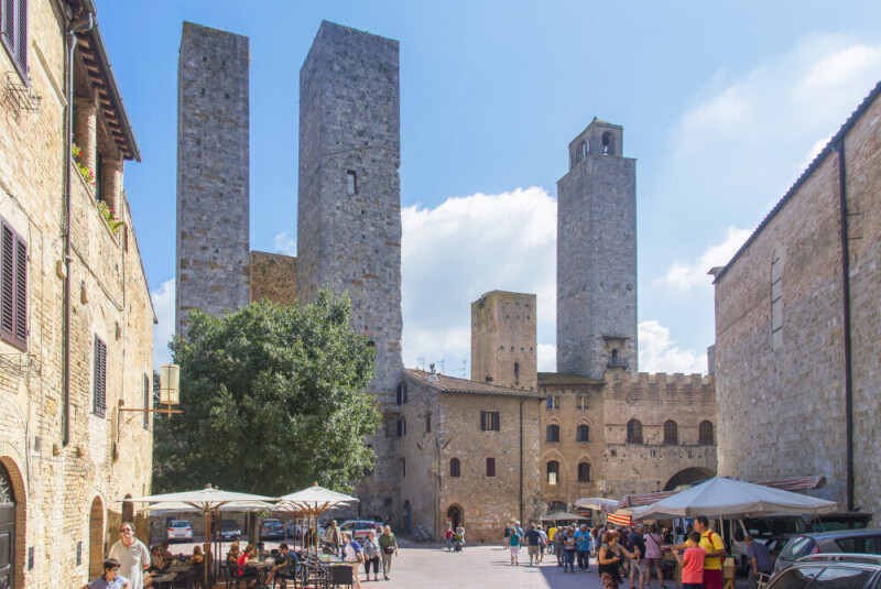 4.Tag: Nach dem Frühstück brechen wir heute zu einem Ausflug nach Siena auf. Lernen Sie die berühmte Stadt mit der Piazza „Il Campo“ bei einer Führung kennen und bestaunen z. B. den imposanten Marmordom oder das Rathaus. Weiter geht es nach einer kleinen Mittagspause nach San Gimignano. Bekannt durch die Geschlechtertürme aus dem Mittelalter wird sie oft auch als Stadt der 1.000 Türme bezeichnet. Von unserer Reiseleitung erfahren Sie interessantes über die Stadt und ihre Geschichte und kehren im Anschluss noch zu einer Weinprobe mit kleinem Imbiss ein. Am frühen Abend fahren wir zurück zum Hotel und lassen den Tag beim Abendessen Revue passieren.