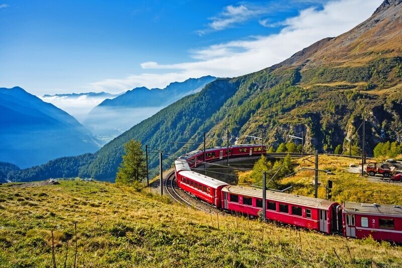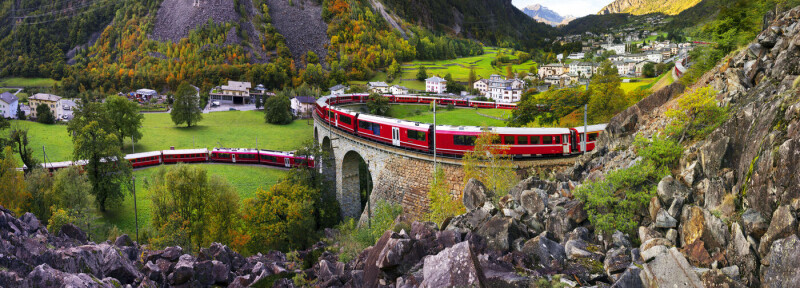 Sie erleben eine der faszinierendsten und spektakulärsten Bahnstrecken. Über den Tonalepass fahren Sie nach Tirano und weiter mit dem Panoramazug Bernina Express. Auf seiner Königsetappe arbeitet sich der Zug hinauf, entlang mächtiger Gletscher und schroffer Gipfel, bis auf 2.253 m. Die Zugfahrt endet in der internationalen Jetset-Hochburg St. Moritz. Nach einem Aufenthalt erfolgt die Rückfahrt mit dem Bus.