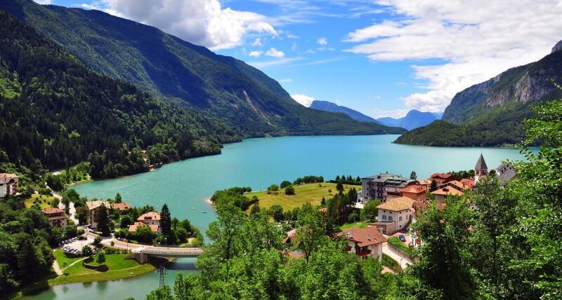 Heute tauchen Sie ein in die eindrucksvolle Welt der Brenta-Dolomiten. In Madonna di Campiglio genießen Sie die herrliche Aussicht auf die Gletscher. Fahrt zu den Nardis Wasserfällen und Spaziergang zu den sehenswerten Kaskaden des Flusses Sarca. Weiter nach Molveno, am gleichnamigen tiefblauen See gelegen.