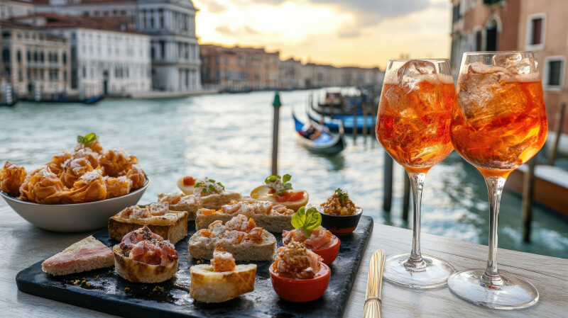Am Nachmittag wartet ein weiteres Highlight auf Sie: ein Spritz-Workshop im Hotel – charmant, gesellig und typisch venezianisch. Sie probieren fünf verschiedene Varianten des beliebten Aperitifs, begleitet von einem Brett mit venezianischen Cicchetti, den traditionellen, herzhaften Kleinigkeiten, die man in Venedigs Bacari genießt.