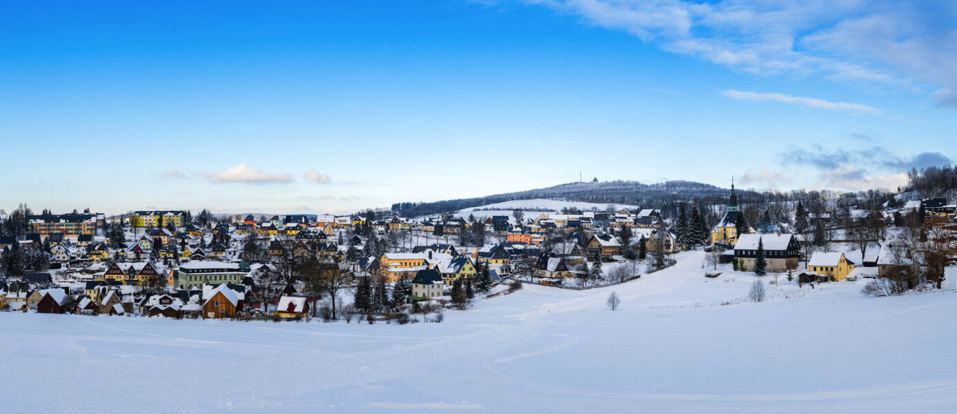 Willkommen im Weihnachtsland Erzgebirge und in Oberwiesenthal, der höchst gelegenen Stadt Deutschlands! Seit 2019 gehört die Montanregion zum UNESCO-Weltkulturerbe und nicht nur der Bergbau hat die Region geprägt. Erzgebirgisches Kunsthandwerk ist untrennbar mit der Weihnachtszeit verbunden und weit über die Grenzen Deutschlands hinaus bekannt. Ein traditioneller Schwibbogen, eine Pyramide, Räuchermännchen und Nussknacker schmücken viele Wohnzimmer auf der ganzen Welt.