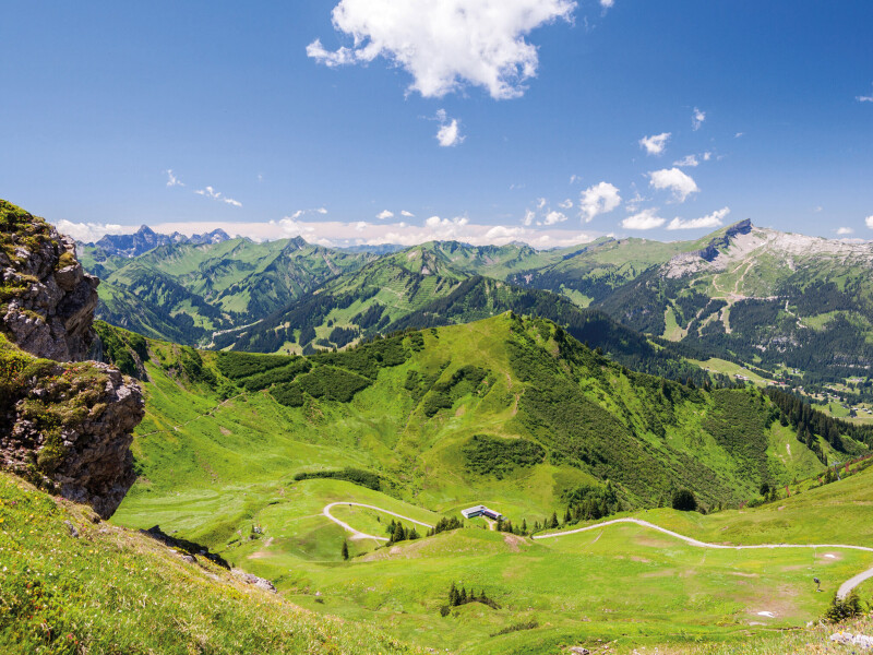 Sie erwandern zunächst das Gemsteltal hinauf zu Bernhards Gemstelalp auf 1290 m. Anschließend geht es entlang der Breitach nach Baad, einem Ort am Ende des Kleinwalsertals, hinter dem sich südlich der höchste Berg der Region, der 2533 m hohe Widderstein, erhebt. Aufstieg über den Baader Höhenweg zur Alpenwand. Dort angekommen werden Sie mit einem grandiosen Blick über das Breitachtal belohnt. Über den höchsten Punkt des Baader Höhenwegs auf 1346 m zurück nach Mittelberg.