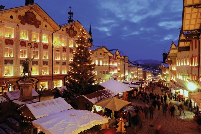 Der Christkindlmarkt in Bad Tölz verwandelt die historische Marktstraße in einen funkelnden Festsaal voller Lichterglanz und verführerischer Düfte. Allerhand schöne Dinge finden sich an den Ständen, von Holzschnitzereien und glänzendem Schmuck bis zu handgezogenen Kerzen und gestrickten oder gefilzten Textilien. Weiterfahrt über Lenggries in den malerischen Luftkurort Mittenwald mit seinem historischen Zentrum. Am späten Nachmittag erwartet Sie eine Weihnachtsfeier mit Liedern, Glühwein und Plätzchen und am Abend ein 4-Gang-Weihnachtsmenü im Hotel.