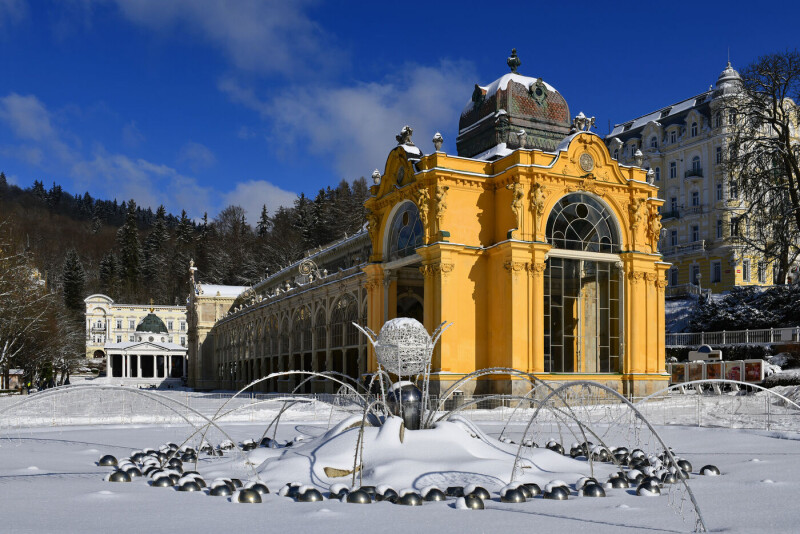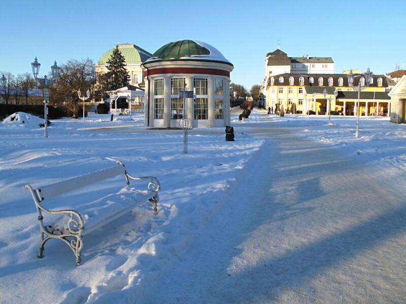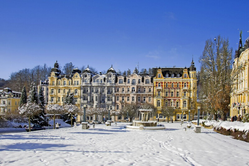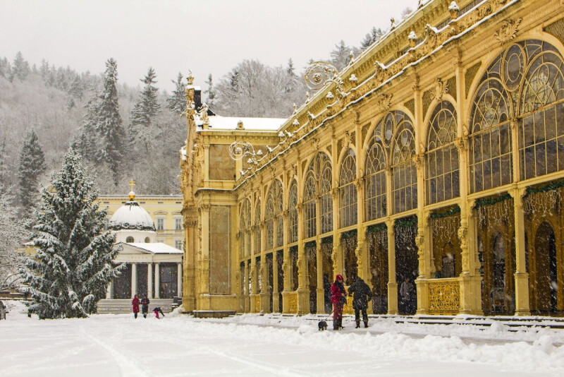 Marienbad ist in der kalten Jahreszeit ein nostalgisches Wintermärchen. Das Zentrum der Kurstadt ist eine einzige schöne Parkanlage mit dem Flair aus glanzvollen Zeiten, mit Wandelhalle, Kurpromenade und Kreuzbrunnen. Die imposante Architektur des 19. Jahrhunderts prägt die meisten Gebäude der Stadt. Entlang der Kurpromenade befinden sich zahlreiche Restaurants, Bars, Cafés und Geschäfte. Freuen Sie sich auf wunderschöne Weihnachtstage in der berühmten Kurstadt Marienbad und auf einen Ausflug in das böhmische Bäderdreieck.
