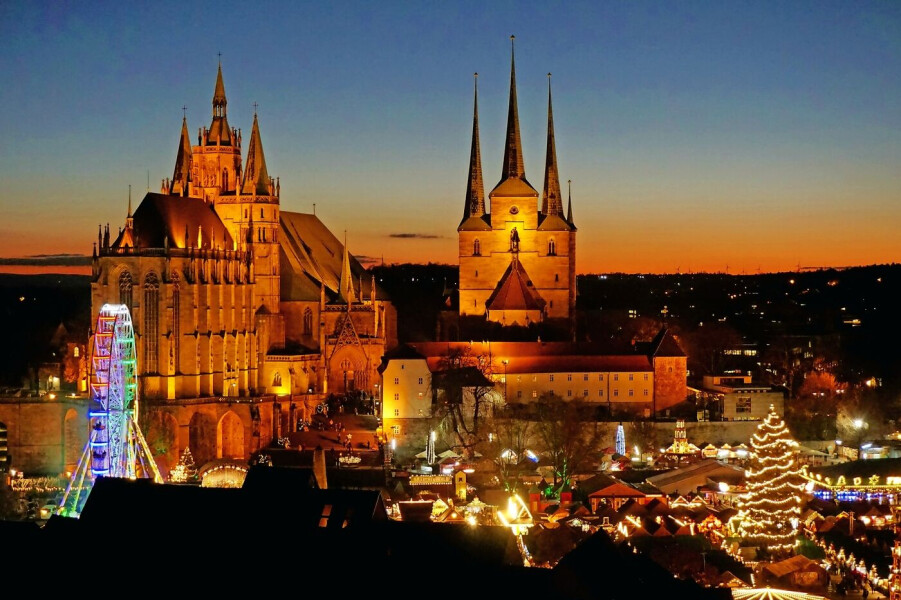 Wir laden Sie herzlich ein zum Rendezvous in der Mitte Deutschlands ein. Erfurt, die Landeshauptstadt Thüringens, besticht durch besonderen Charme, Sie lernen die Stadt während eines geführten Rundgangs näher kennen. Schon von weitem grüßt das Wahrzeichen der Landeshauptstadt, das imposante Ensemble von Dom und St. Severi. Eine besondere Attraktion der Stadt ist die Krämerbrücke, die längste bewohnte Brücke Europas. In der Weihnachtszeit ist ein Bummel durch die mittelalterlichen Gassen und über den Domplatz besonders reizvoll. Überall duftet es nach Pfefferkuchen, Glühwein und Rostbratwurst und es lohnt sich eine echte Thüringer Roster zu probieren.