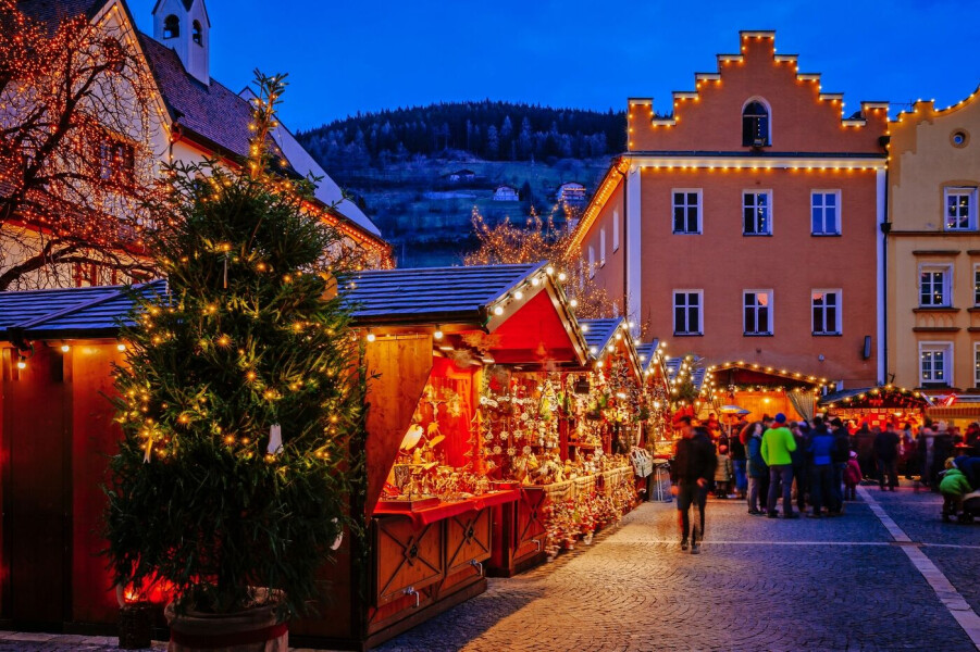 Nach einem ausgiebigen Frühstück fahren wir nach Bruneck mit Besuch eines traditionellen Weihnachtsmarktes. Im Anschluss fahren wir nach Brixen, der ältesten Stadt Tirols. Besichtigen Sie die mittelalterlichen Lauben, die weihnachtlich geschmückten Gassen, den Weißen Turm und den barocken Dom mit dem Christkindlmarkt. Abendessen im Hotel.