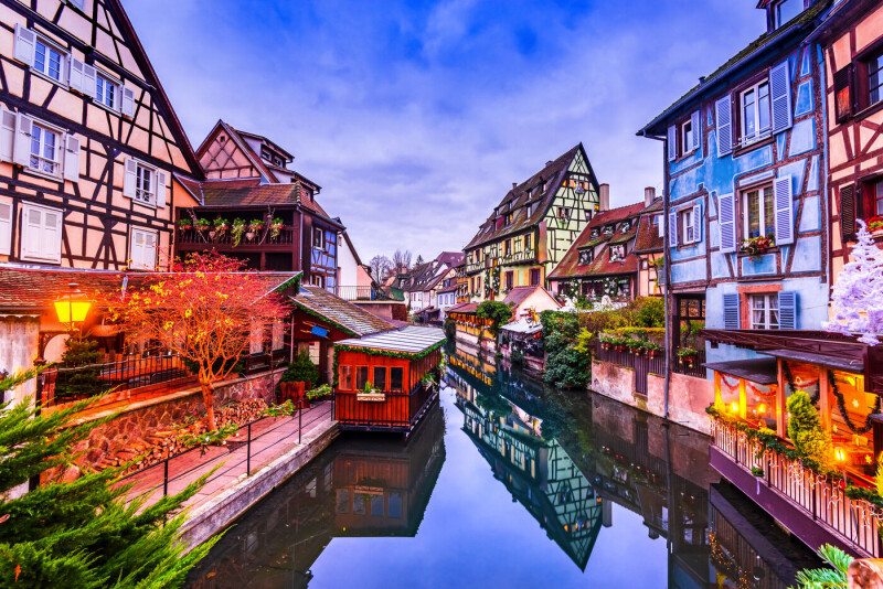 Entdecken Sie die vorweihnachtlich geschmückte Stadt Colmar. Die Kleinstadt im Südelsass rivalisiert mit Straßburg um den Ruf des schönsten Weihnachtsmarkts in der Region. Die Traditionen gehen in Colmar vor und müssen nicht bunten Karussells weichen. In der Fußgängerzone und auf mehreren Plätzen befinden sich verschiedene kleine Weihnachtsmärkte. Colmar hat viele aus dem Mittelalter und der Renaissance stammende Häuser, die maßgeblich den Charakter der Stadt prägen. Ein Ansporn, die Stadt zu schmücken besteht im jährlichen Wettbewerb, in welchem das schönste Haus gekürt wird.