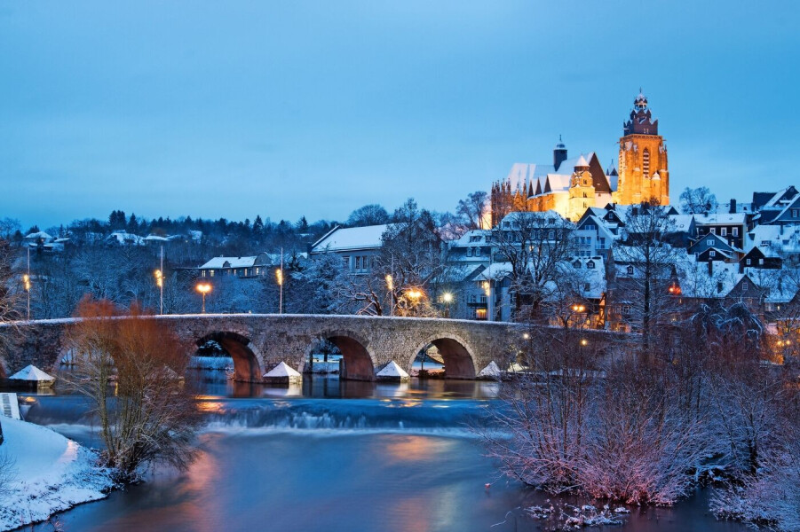 Nach dem Frühstück starten Sie mit Ihrer Reiseleitung zu einer Lahntal Rundfahrt. Entdecken Sie zum Beispiel Wetzlar: in der ehemaligen Reichs- und Kammergerichtsstadt lernte Johann Wolfgang Goethe im Jahre 1772 Charlotte Buff kennen. Dieses Erlebnis beeindruckte den damaligen Praktikanten derartig, dass daraus der berühmte Briefroman „Die Leiden des jungen Werther“ entstand. Ebenso hat Wetzlar eine lange Tradition in der Optik und Feinmechanik. Hier wurde die erste Kleinbildkamera entwickelt und in Großserie hergestellt. Noch heute steht der Name LEICA für Fotografie auf höchstem Niveau. Statten Sie doch dem Wetzlarer Weihnachtsmarkt einen Besuch ab (vorbehaltlich Öffnungszeiten), bevor Ihr Ausflug weitergeht. Auch die Universitätsstädte Gießen und Marburg sind eine Besichtigung wert. Rückkehr am Spätnachmittag, gemeinsames Abendessen und Übernachtung.