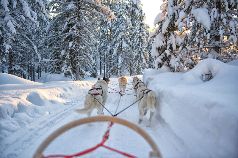 Inklusive Huskyfarm und Hundeschlittenfahrt & Abendlicher Ausflug zum Schneedorf