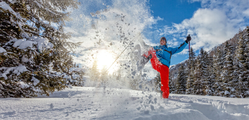 Nach dem Frühstück treffen wir unseren Wanderführer und starten zu einem Ausflug in die herrliche Winterlandschaft rund um den Staller Sattel. Nur das Knirschen des Schnees unter unseren Füßen durchbricht die traumhafte Stille, wenn wir mit Schneeschuhen durch verschneite Wälder wandern und dabei die Ausblicke auf die umliegenden Berggipfel genießen. Zu einem perfekten Tag gehört natürlich eine gemütliche Einkehr – sicher legen wir in einer der netten Jausenstationen eine wohlverdiente Pause ein, bevor wir unsere Schneeschuhe wieder anlegen und den Rückweg in Richtung Hotel antreten.
