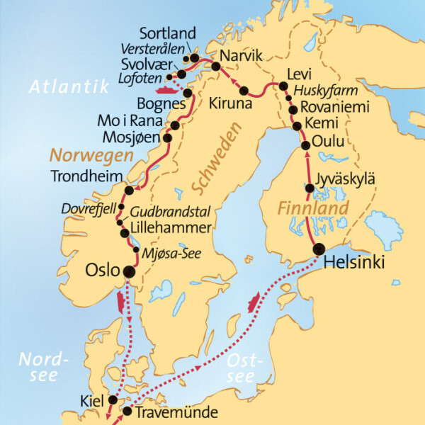 Erleben Sie die verschneiten Winterlandschaften im hohen Norden - von Finnisch Lappland bis zu der Inselkette der Lofoten. Trotz der eher dunklen Jahreszeit sind die Tage hell und laden zu einzigartigen Aktivitäten ein. Sie unternehmen eine Hundeschlittenfahrt und besuchen eine Samenfamilie!