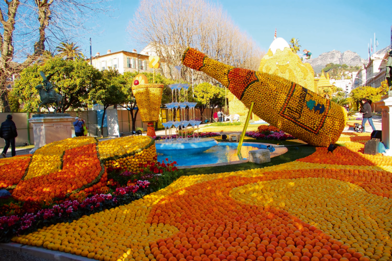 Das „Fête du Citron“ in Menton ist ein Fest für alle Sinne und einzigartig in seiner Art. Jedes Jahr verwandeln rund 145 Tonnen Zitronen und Orangen die Stadt in ein leuchtendes Farbenmeer. Riesige Figuren und fantasievolle Motive aus Zitrusfrüchten schmücken die Straßen und Gärten. An mehreren Sonntagen ziehen die festlich dekorierten Wagen in einem farbenfrohen Umzug am Meer entlang – begleitet von Musik, Tänzern, Blütenarrangements und kunstvollen Kostümen.