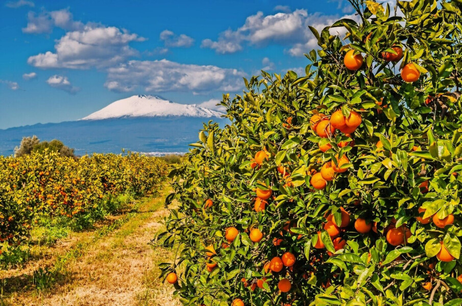 Tag 4: ÄTNA UND ORANGENPLANTAGE. Heute dreht sich alles um den Ätna und Orangen. Sie fahren auf Europas höchsten Vulkan und erleben dabei wechselnde Vegetationszonen – von Zitrusplantagen bis hin zu Lavawüsten. Vom Rifugio Sapienza (1900 m) bietet sich ein weiter Blick über die Ostküste. Optional können Sie per Seilbahn und Spezialfahrzeug bis auf 2900 m fahren (Preise ca 50 - 80 €, Stand bei Drucklegung). Am Nachmittag besuchen Sie eine Orangenplantage, erfahren Wissenswertes über den Anbau und genießen regionale Weine und Spezialitäten bei einem Imbiss.